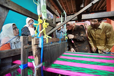 Coordinating Economic Minister Hatta Rajasa (second right) and Bank BNI president director Gatot M. Suwondo (right) talk to Zaenabun (left), a traditional songket weaver after inaugurating Kampoeng BNI in Muara Penimbung village in Ogan Ilir, South Sumatra, on Thursday. Some 100 songket makers in the village received a Rp 1 billion (US$106,695) partnership loan from BNI. JP/Ricky Yudhistira